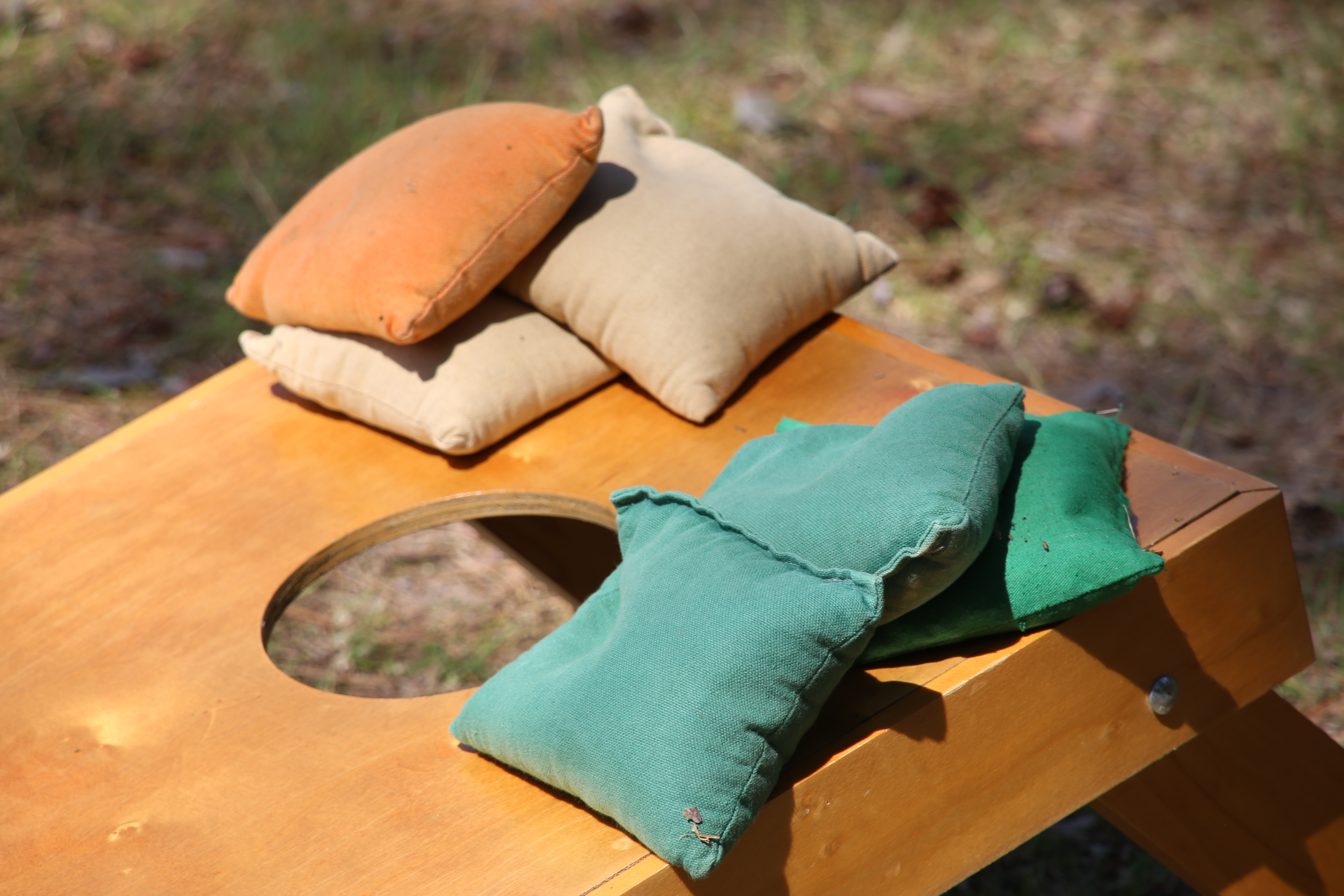 The game consists of two wooden boards, each with a hole cut near the top of the board. The boards are placed about 27 feet apart from each other, and players stand behind their board and take turns throwing bean bags filled with corn or synthetic materials at the opposite board.